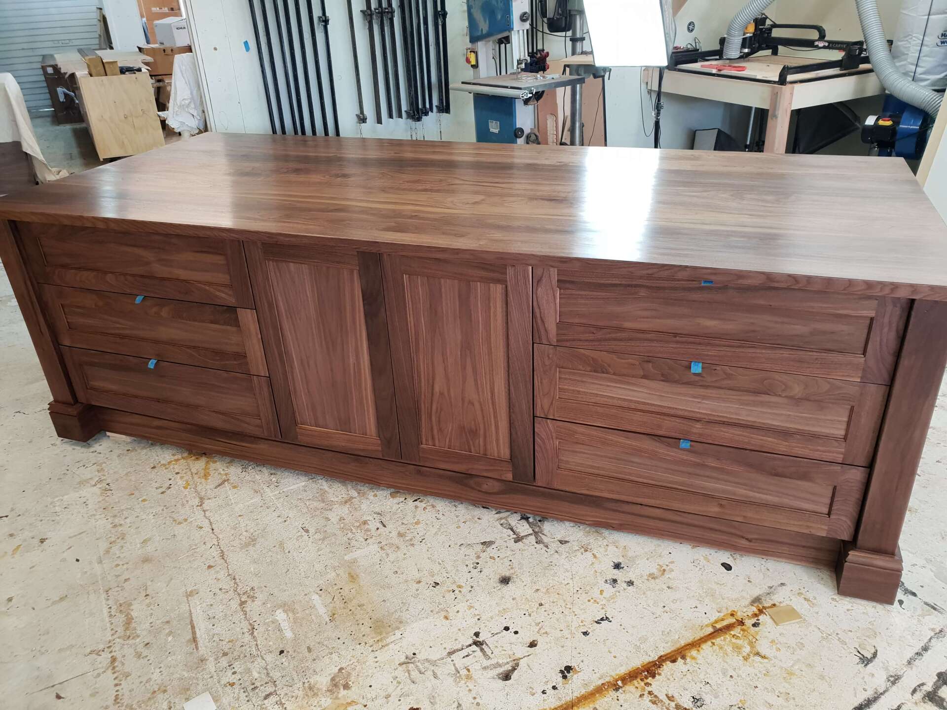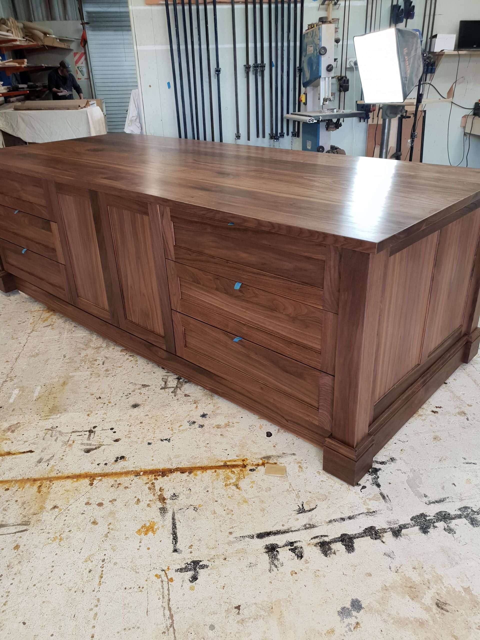 “Joey designed and made our solid walnut kitchen island and a drinks bar originally and ended up doing our entire kitchen and scullery, laundry and an internal barn door in the shou sugi ban or charred wood finish. Absolutely amazing skills. Very clever guy.”