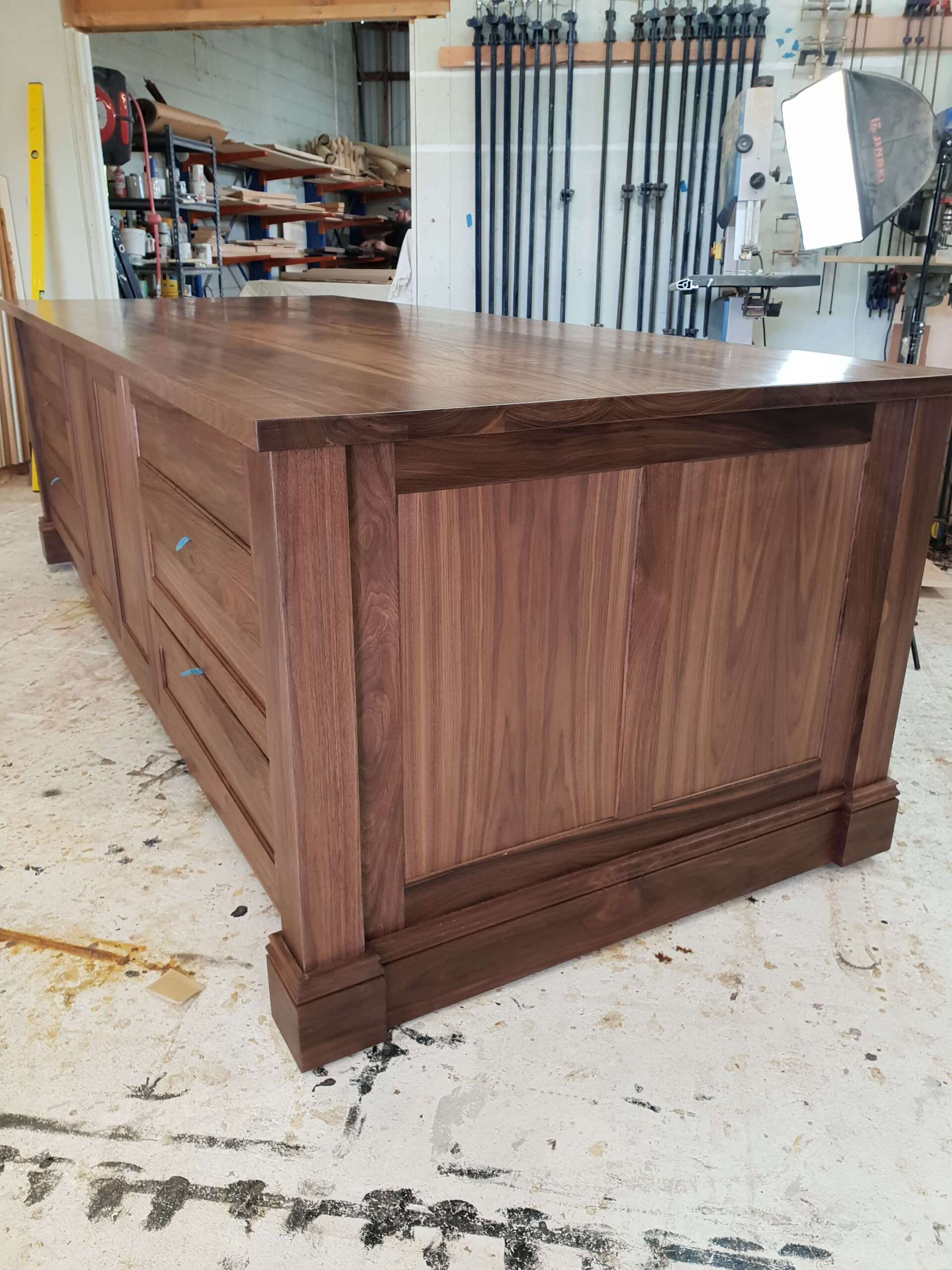 The client presented pictures she had found on Pinterest of the type of style she wanted on her walnut kitchen island amidst a much lighter timber kitchen surrounding.